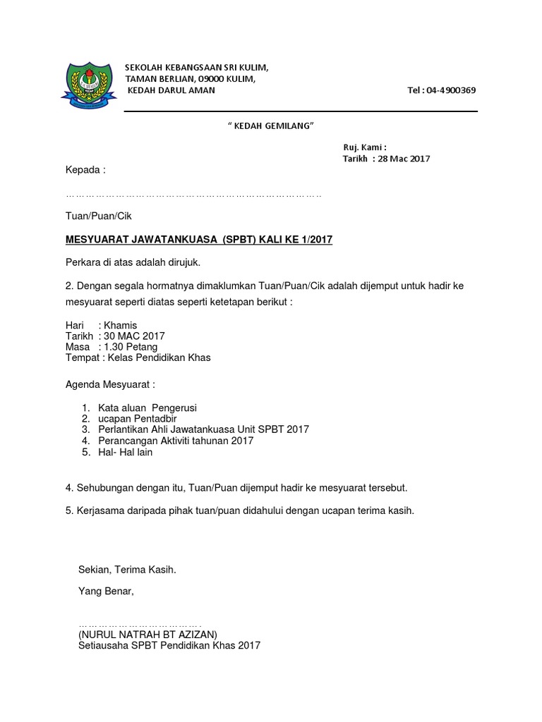 Related : Minit Mesyuarat Spbt Kali Pertama 2017 - Agenda mesyuarat adalah seperti berikut:.